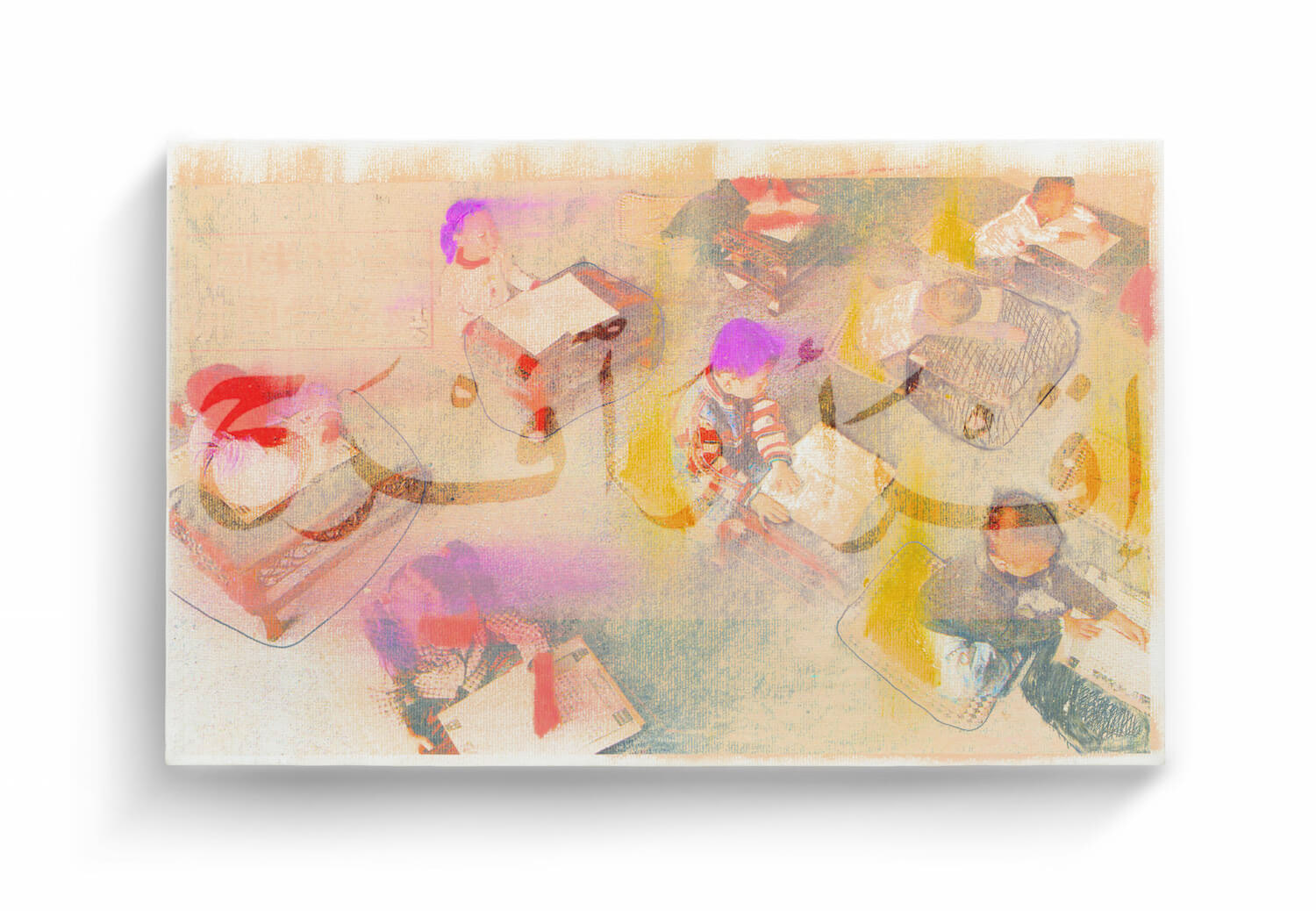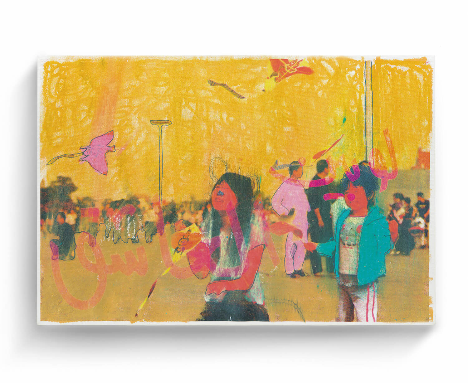 A series based off of collected Beijing newspapers from between 2005 and 2007, scanned Arab book covers found in Beirut, and oil pastel drawings. All layered, connected in a over the top way. The Gulf is indeed weird.