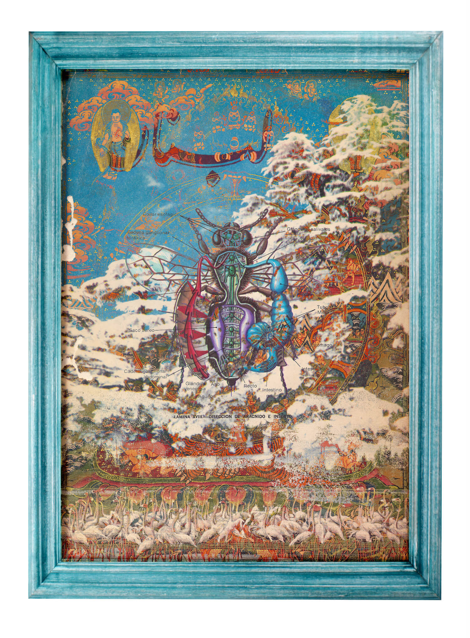Scanned Thanka's collected in Kathmandu and then digitally altered and layered with vintage postcards from Key West, Florida.